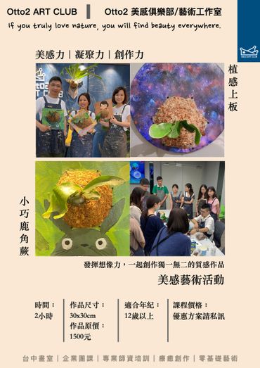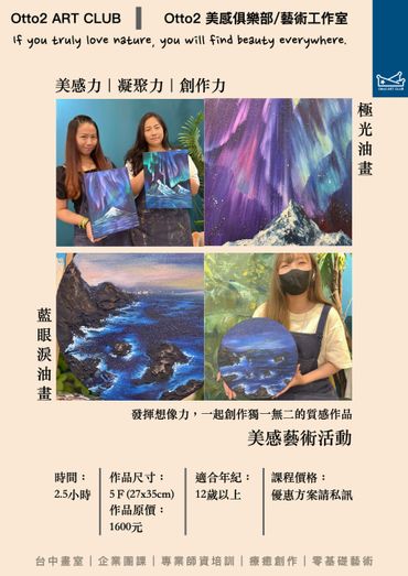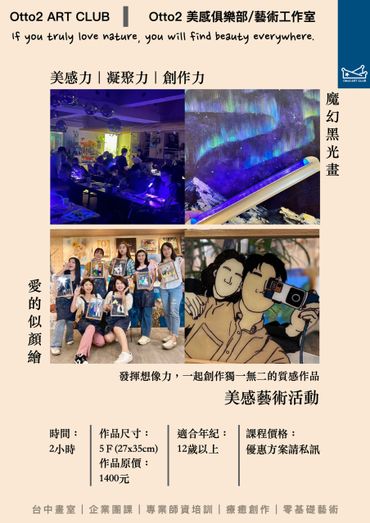 專為熱愛藝術並希望在藝術領域中發展自我創造力的成人設計。課程涵蓋多種藝術媒介,包括繪畫、雕塑、拼貼藝術、和數位藝術。無論您是藝術新手還是有經驗的藝術愛好者,這個課程將幫助您探索新的技術,提升藝術表現力。
